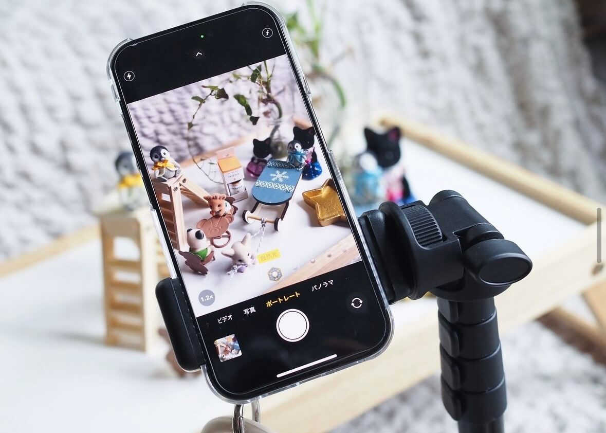 ミニ三脚も100円ショップに売っているので、組み合わせれば220円で三脚での撮影ができますよ。