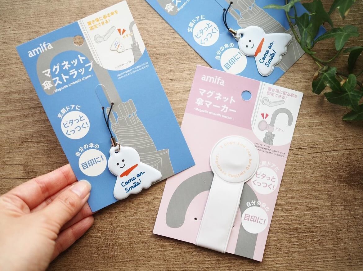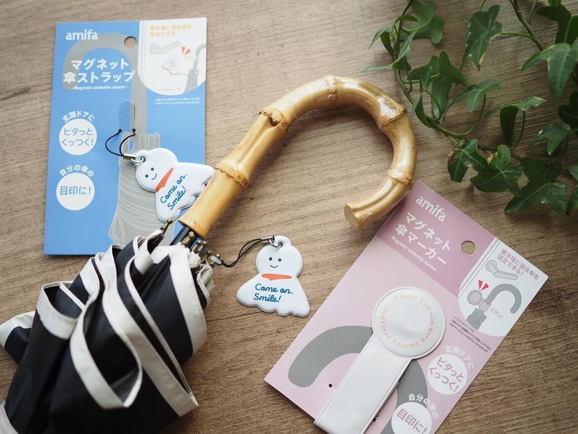 まず最初にご紹介するのは、傘に取り付けることができる「マグネット傘ストラップ」と「マグネット傘マーカー」です。