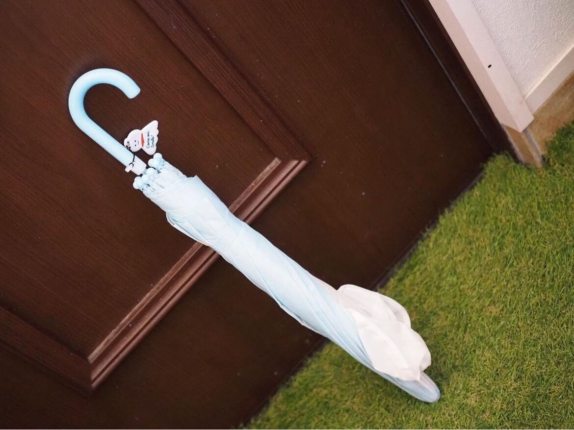 マグネットがくっつくタイプの玄関ドアに、傘を固定することができるスグレモノ。