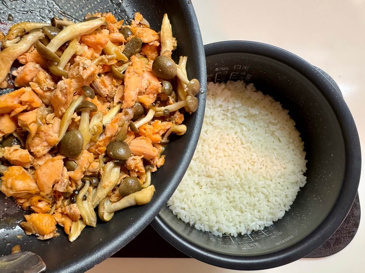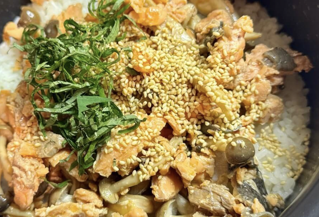 家族みんなが「うまい、うまい!」とおかわりして食べてくれた「鮭ときのこの混ぜご飯」。