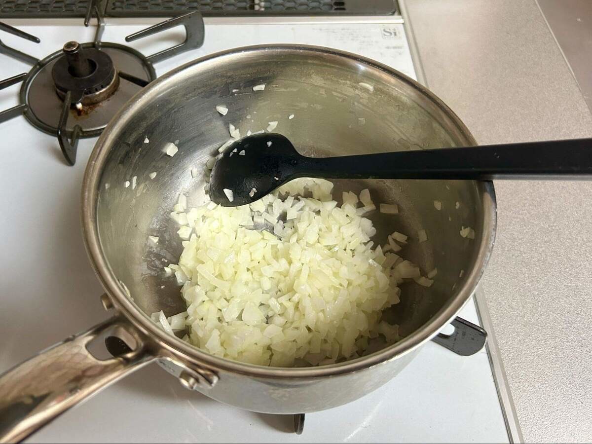続いて、玉ねぎをバターで食感が残る程度まで炒めます。