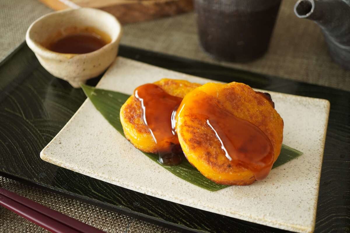 今回はみたらし風のたれをかけましたが、かぼちゃもちを焼くときにバター、砂糖、しょうゆで味付けするのもおすすめです。
