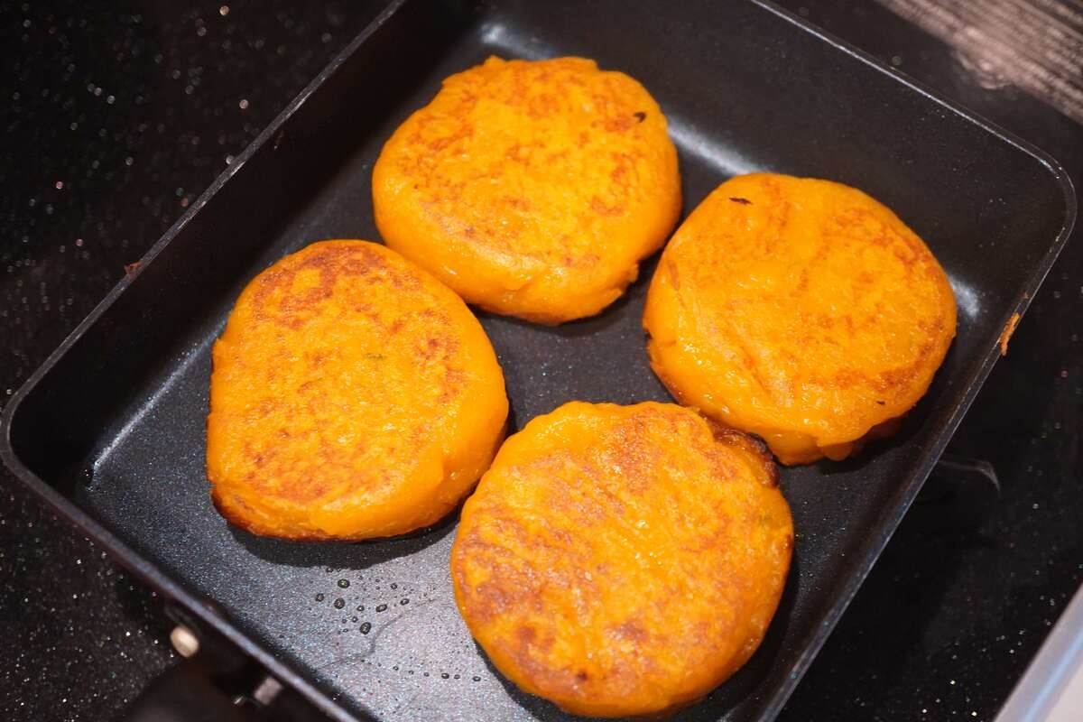 北海道の郷土料理「いももち」をかぼちゃにかえて作った一品です。