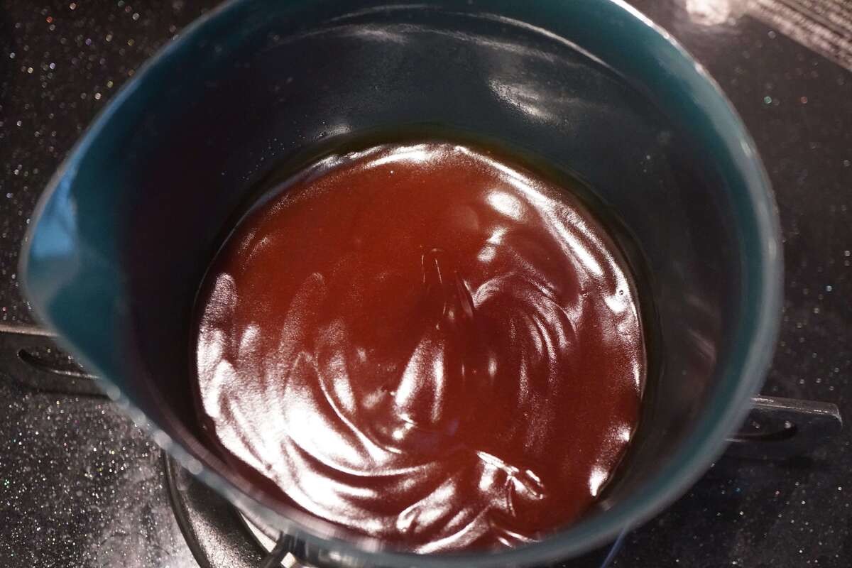 弱火で熱し、ゆっくり混ぜながら、たれが透き通ってとろみが出たら火を止めます。