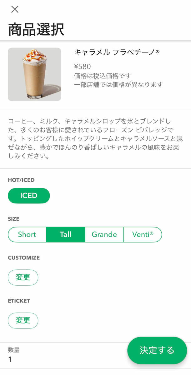 まずは、いつものようにキャラメルフラペチーノを注文しましょう!