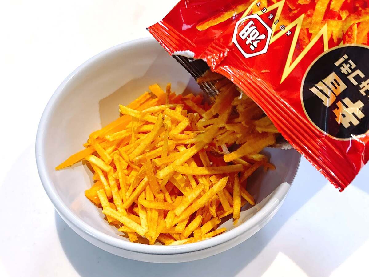 サクッとしたカラムーチョの食感とにんじんのシャキシャキ感が、めっちゃくちゃ合います♡ カラムーチョはもとはじゃがいもなので、ポテト感も楽しめて……いい!!!
