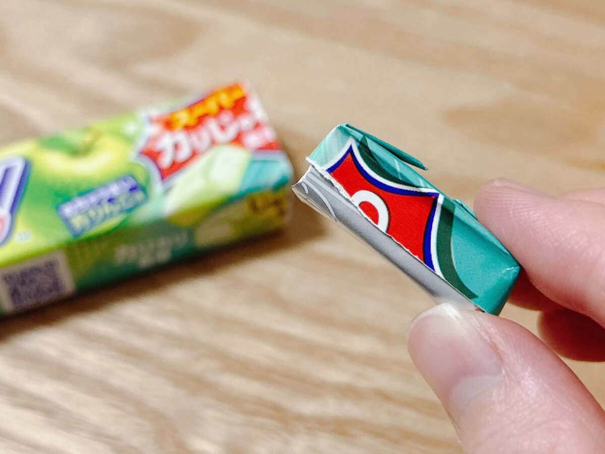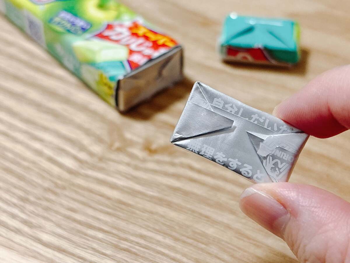 ハイチュウやガムを開けた後、いつもはこんな感じに開け口を折りたたんでいたのですが……