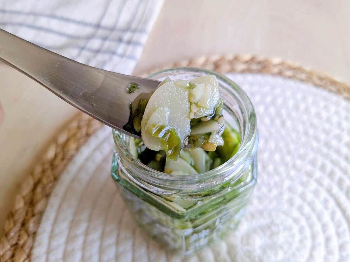 にんにくとの相性は最高、そこにほんのりやってくる鰹出汁の風味。さらに食欲をそそるピリ辛まで攻めてきて、もうノックアウト!