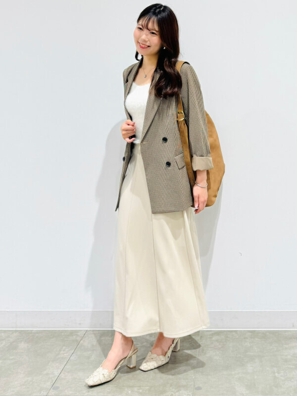2. チェックジャケットで作る、きれいめワントーンコーデ