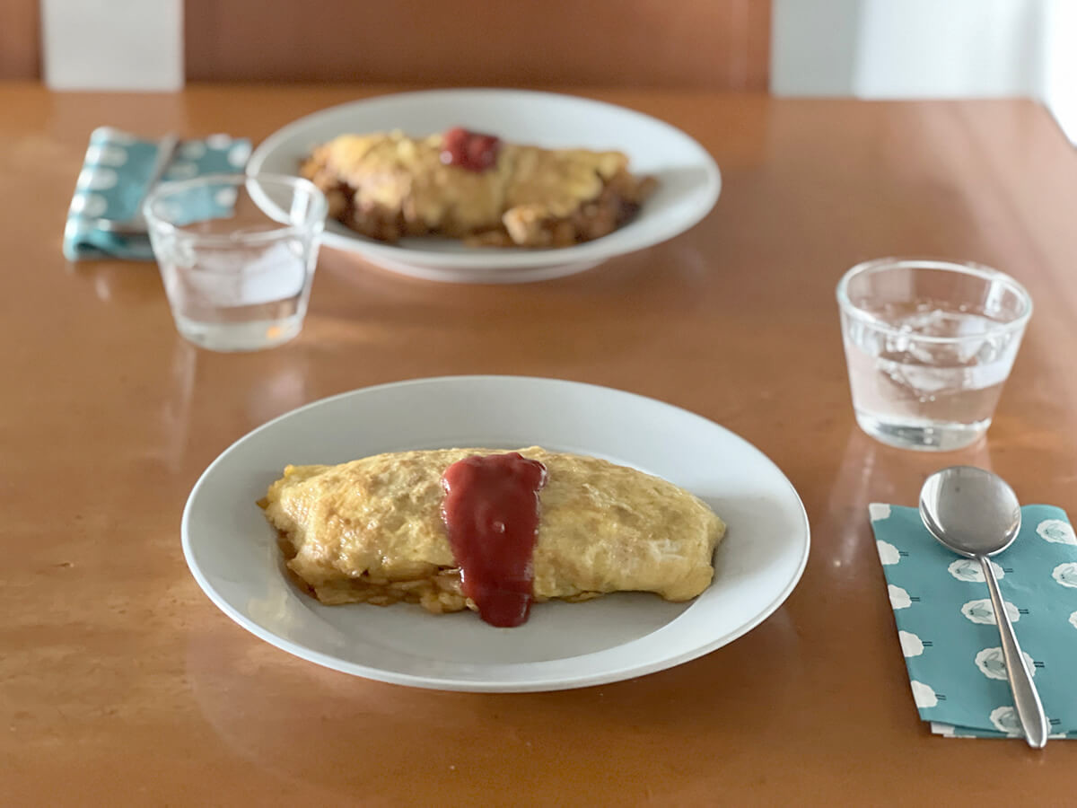 とはいうものの、ナポリタンに比べてオムライスはあまり家では作らないことに気がつきました。最後に卵で包むのが、上手にできなさそうで、心理的なハードルになっているのだと思われます。