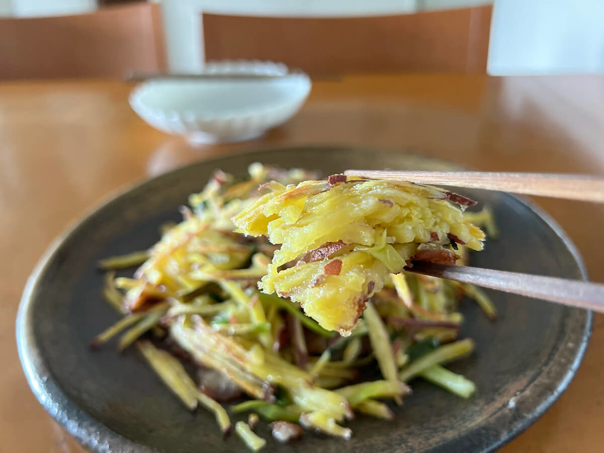 自然な甘みにちょっとしょっぱさが加わって、焼き芋でもない、蒸し芋でもない、立派な料理になった残り物のさつまいもがとても愛おしく思えたのでした。