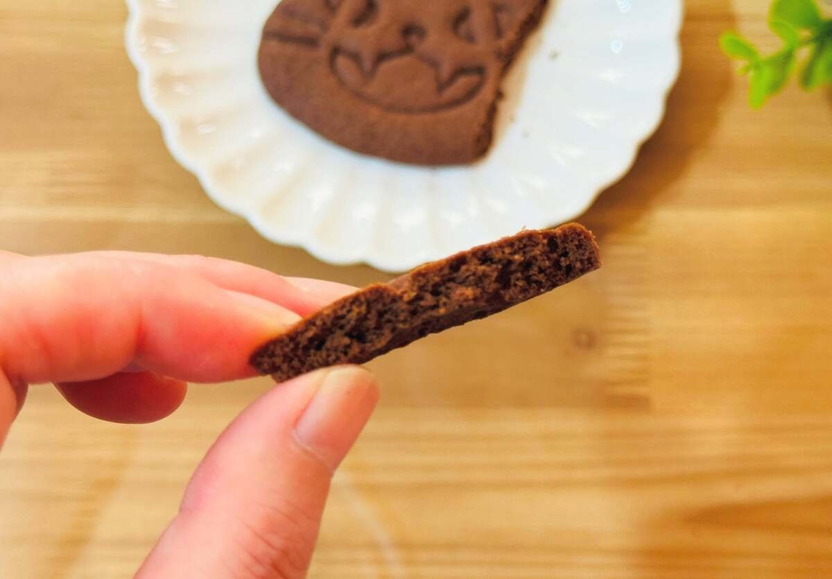 食べてみるとザクザクと固めな食感で歯ごたえがよく、ココアの風味がしっかりとあって万人受けする味かと思います。