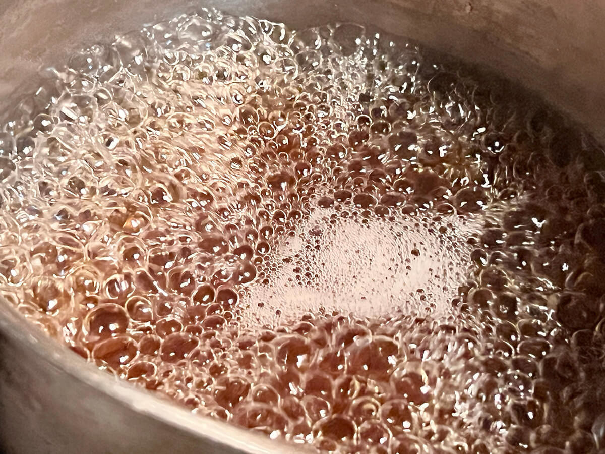 小鍋にだし汁、淡口しょうゆ、塩を入れて火にかけ、ひと煮立ちさせて火を止めます。