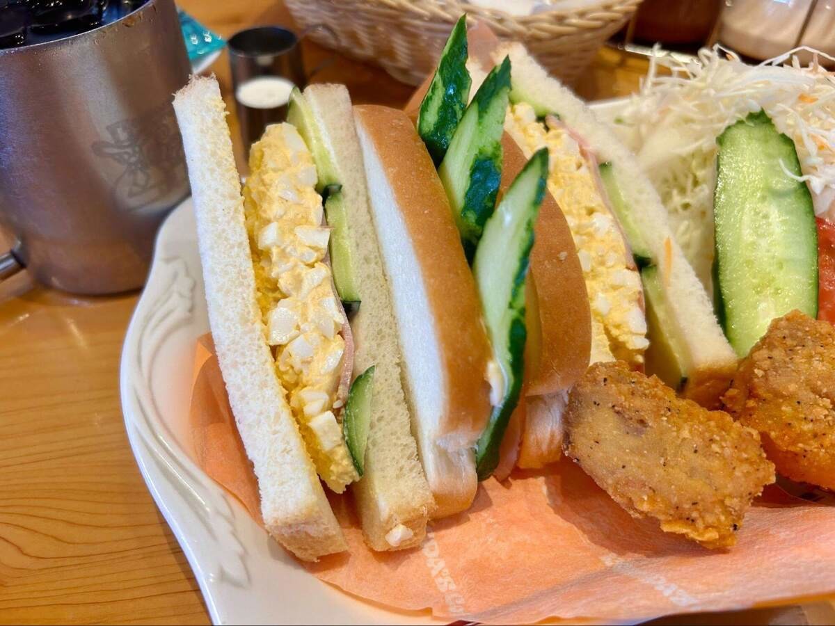 コメダ珈琲店といえば、いい意味での写真詐欺が有名な話ですが、これもメニュー写真の2倍はありそうなくらい分厚いサンドウィッチです。