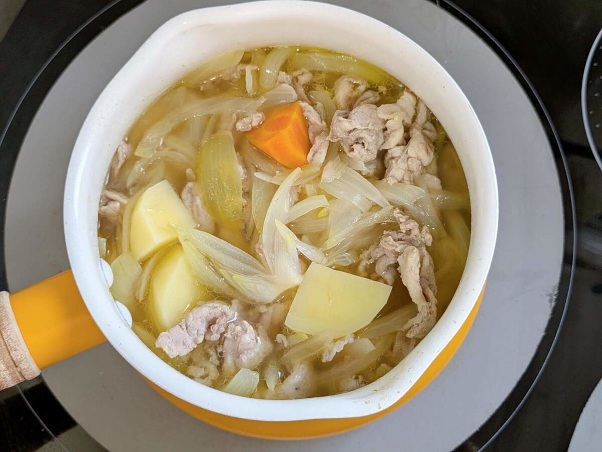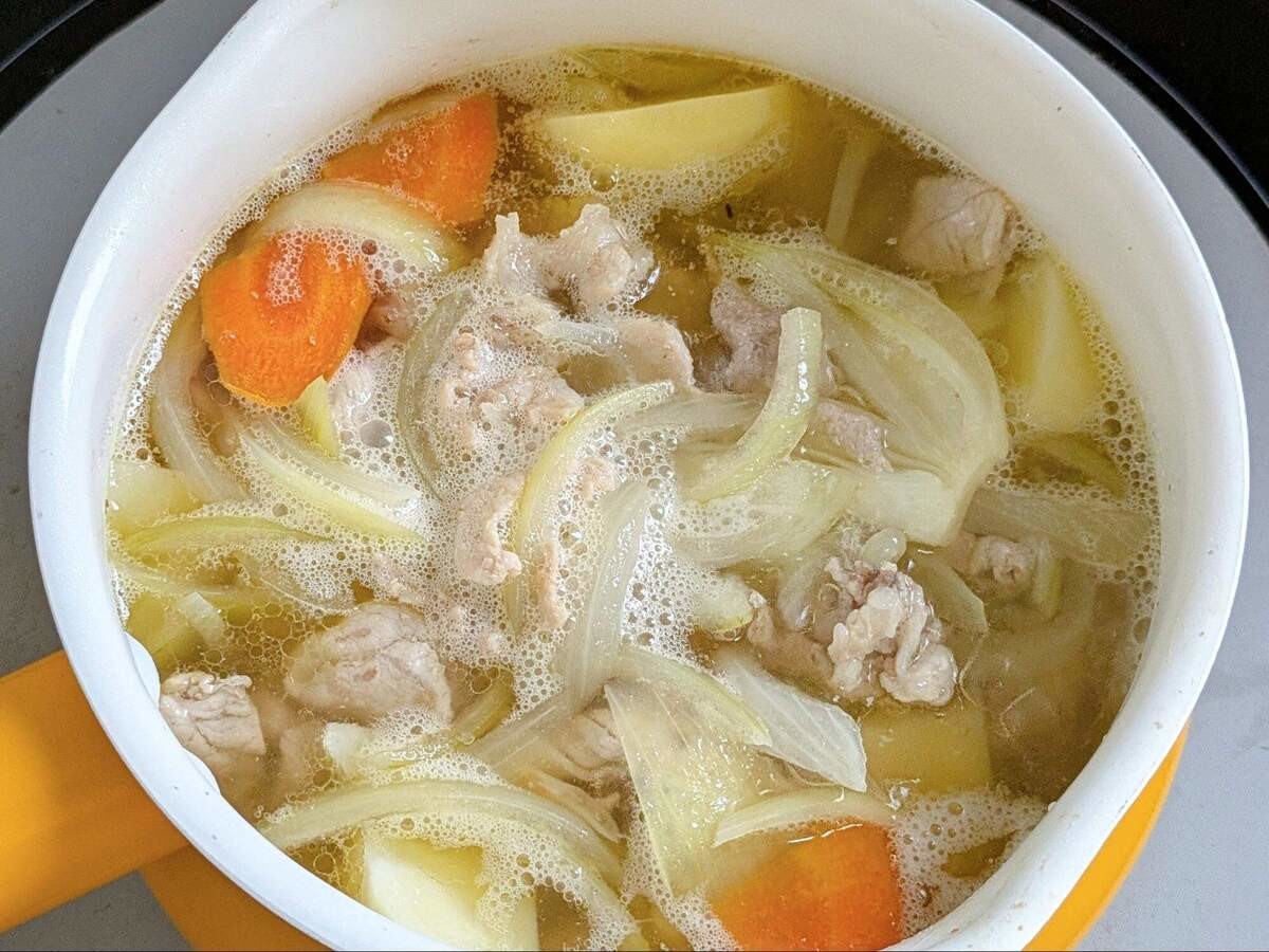 試しにアクを舐めてみると、多少お肉のにおいはあるものの、それ以外は玉ねぎとにんじんの風味がする程度。個人的にはまったく気になりませんでした。