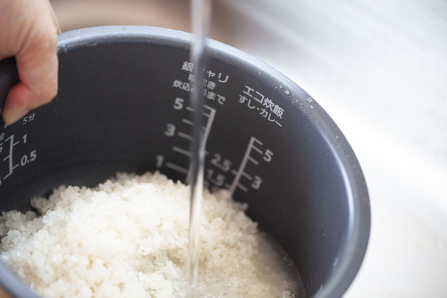 まずボウルや鍋にきれいな水を入れ、その中にお米を加えましょう。