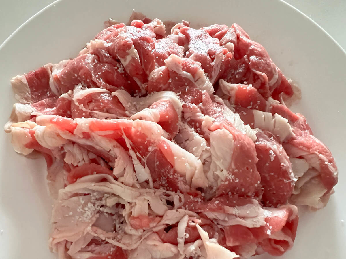 牛肉には塩をふっておきましょう。