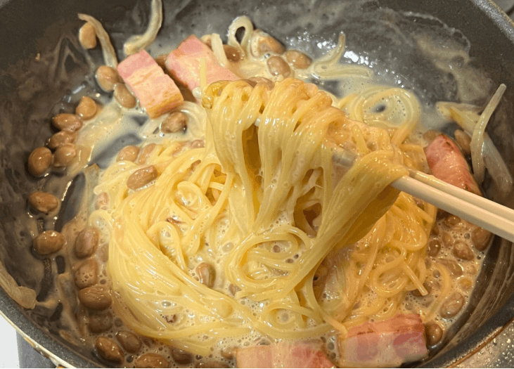 筆者のように「納豆をもっと楽しみたい」という納豆好きさんにはもちろん、マンネリ化しがちなパスタレシピの新定番として、ぜひ試してみてくださいね。