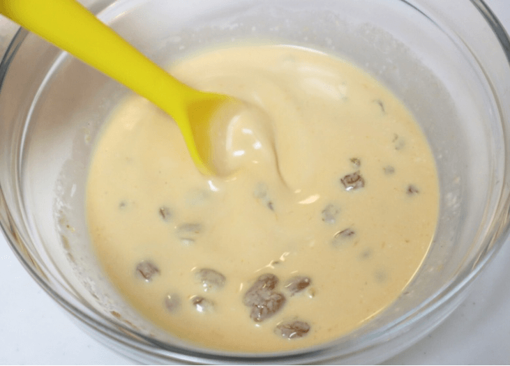 ボウルに生クリーム・醤油・みりん・鶏ガラスープの素・卵黄1個を加え、よく混ぜ合わせます。