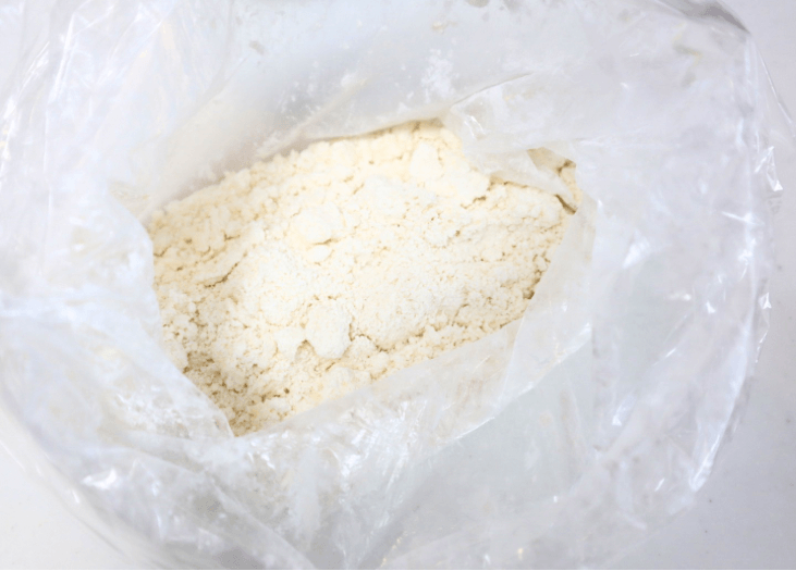 ポリ袋に【A】の材料を入れて、粉とバターをこすり合わせて均一になるように振ります。