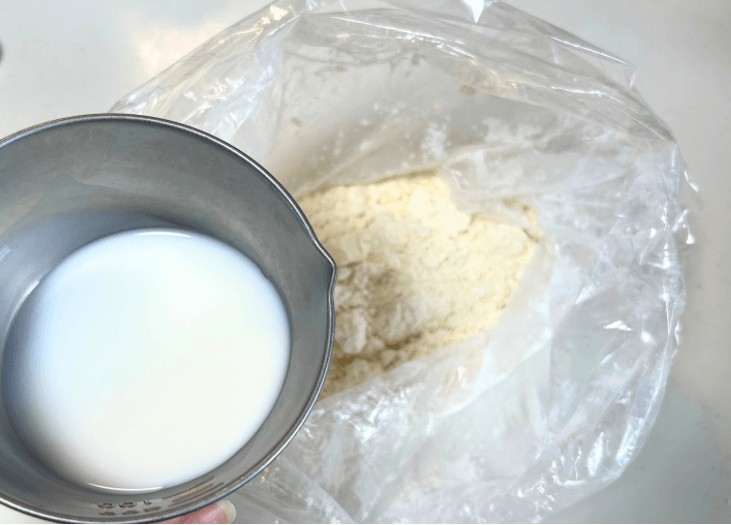 均一になるようにこ揉み合わせ、生地がほんのり黄色っぽくなればOK!