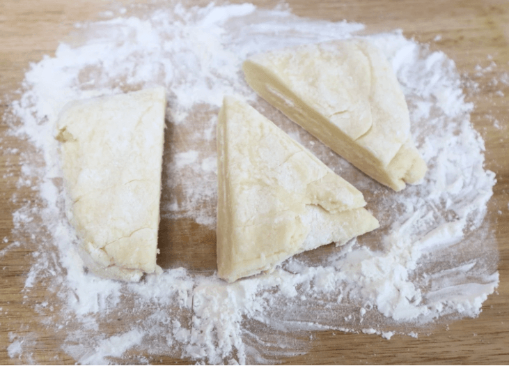 次に、折りたたんだ生地をお好きな型で抜くか、包丁で好きなサイズに切ります。