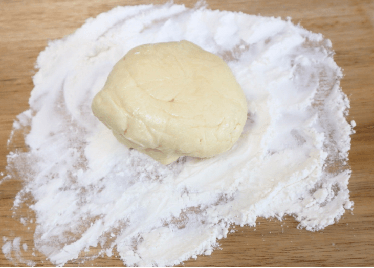 まな板や作業台に適量のホットケーキミックスまたは小麦粉で打ち粉をして、先ほどの生地をのせます。