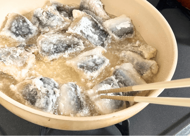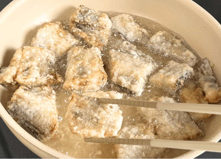 干物は普通の魚より水分が少ないので、揚げ時間は短めでOK♪