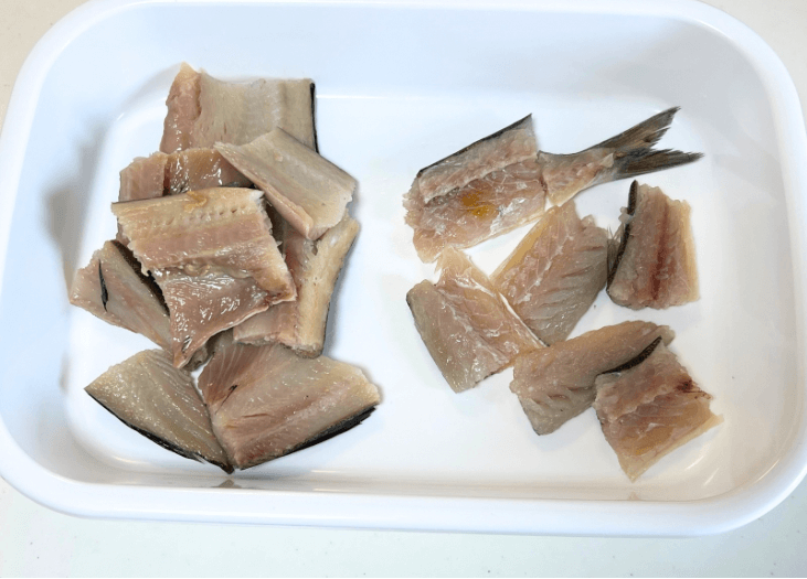 冷凍していた干物を使う場合は、熱めのお湯をかけて酸化した脂を流しても良いそうです。