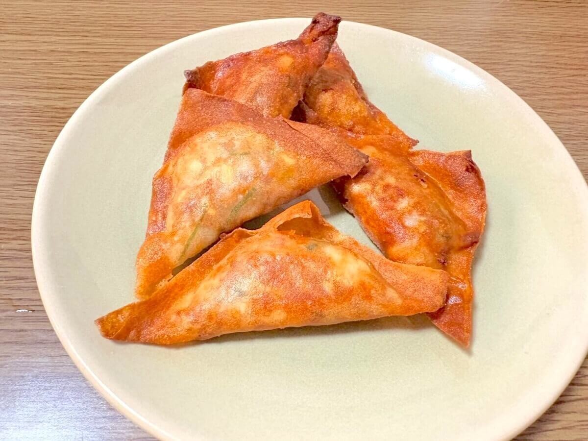 ただ、出来上がった料理を見ると春巻きの皮がきつね色にカラッと揚がり、表面はパリッとした質感で、見ただけで「絶対美味しいやつ!」と確信しました。
