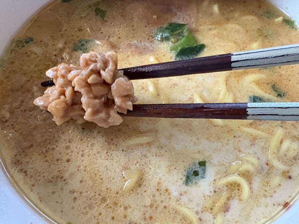 実はお店では味噌カレー牛乳ラーメンに、納豆をプラス100円でトッピングができるのですが、全国で紹介されてから観光客の方がネタとして頼んで結局食べられず残していくという悲しい出来事が多発。