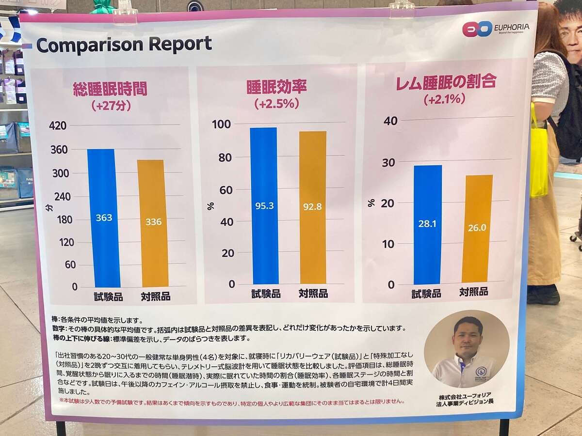 新製品発表会では、”着用して1分後には血流速度が大幅に上昇した”事例も紹介されました。(写真参照)