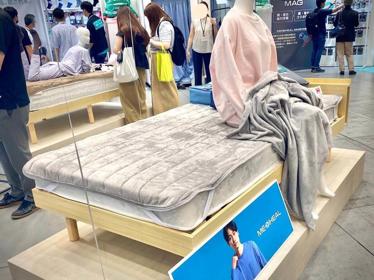 そのうちのひとつが敷きパッドです。 片面がメディヒール仕様、もう片面はピーチ起毛で春や秋にも使える仕様に。リバーシブルで使えます。どちらも肌触りがとてもよく、さまざまな人気量販店の寝具にも負けないクオリティではないでしょうか。