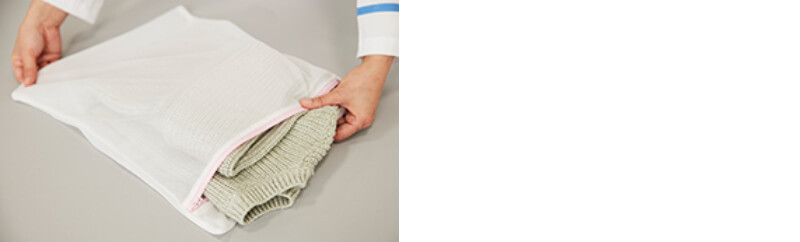 衣類がほかの衣類とからんだり、型くずれしたりするのを防ぐために、たたんで洗濯ネットに入れましょう。