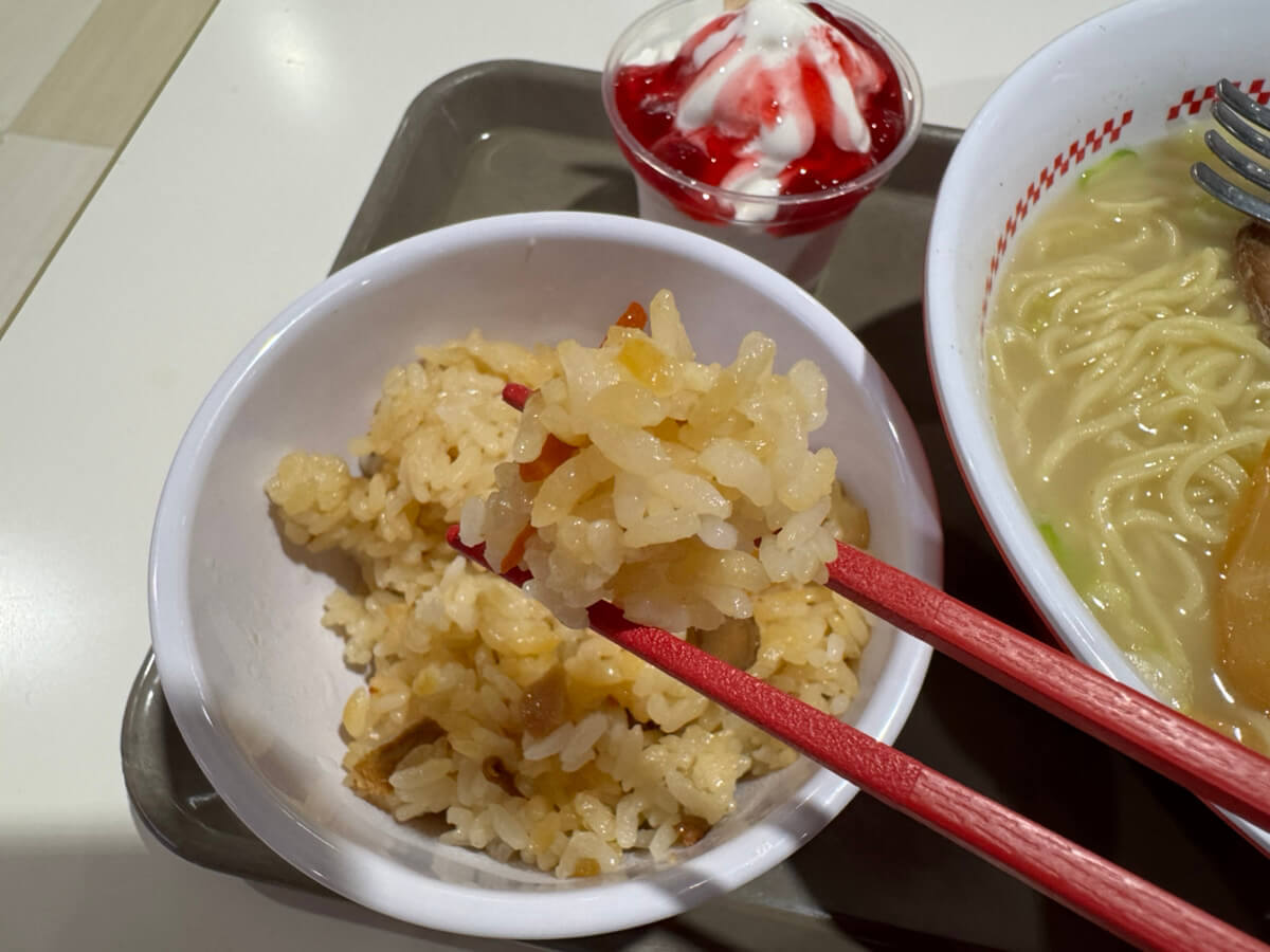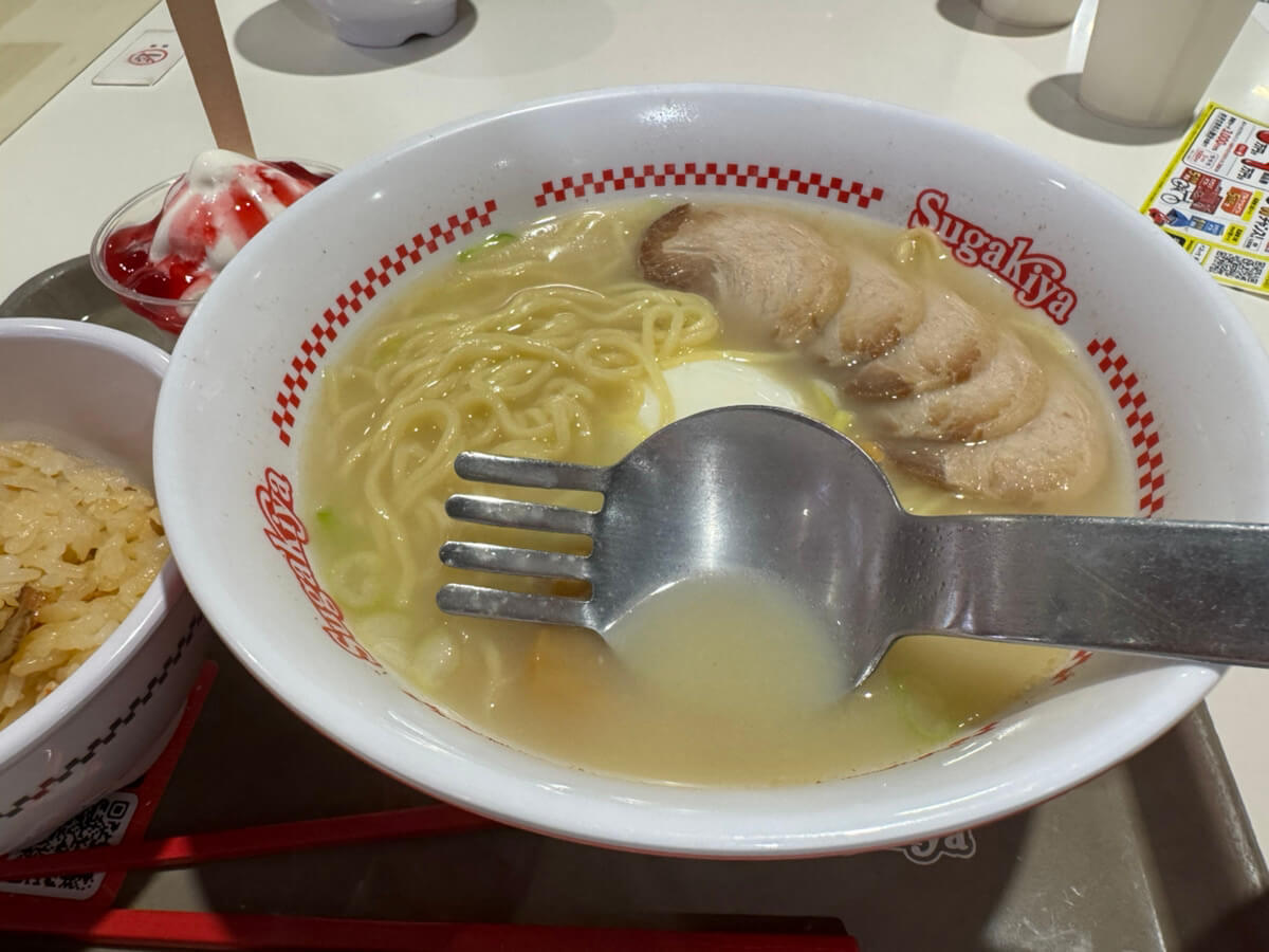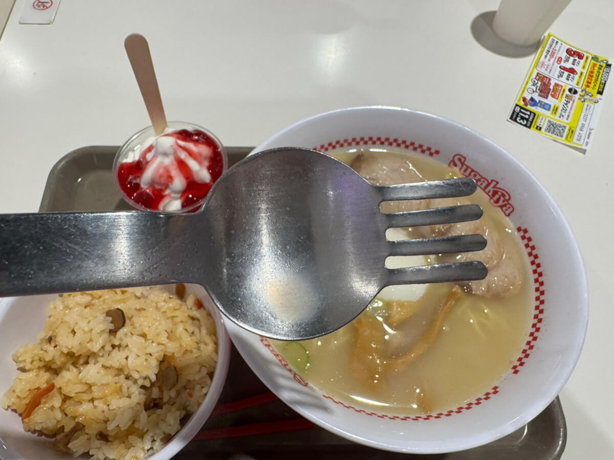 スガキヤ名物・ラーメンフォークと五目ごはん