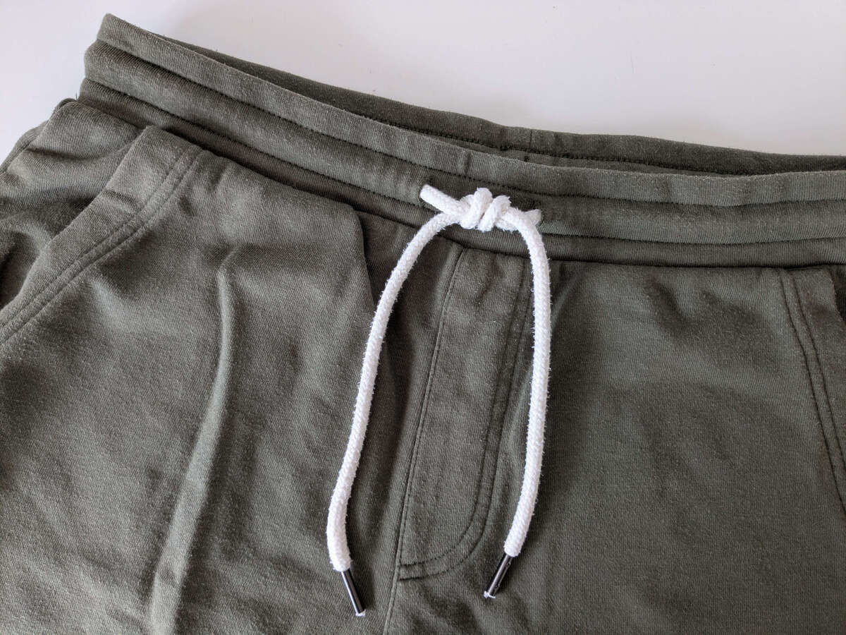 ウエストに紐がついているズボンは、絞るだけでサイズ調整ができるのでラクですよね。