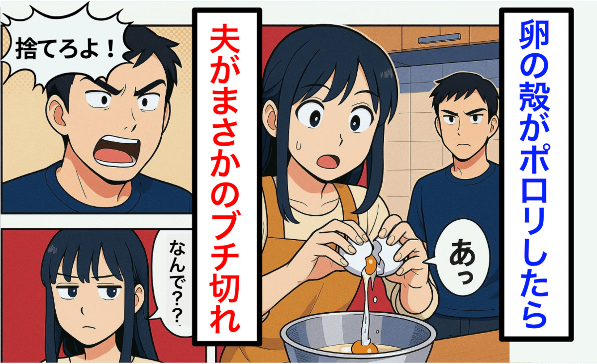 【卵の殻】が入っただけなのに...なぜか夫が「料理も捨てろ!」⇒ブチギレ"理由"を聞いて絶句…衝撃の真相とは