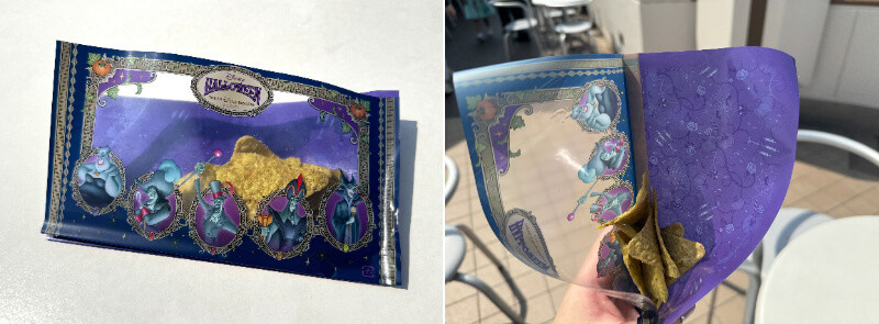 トゥモローランドにある「ソフトランディング」では、メニュー購入時にキャストさんに「トリック・オア・トリート!」と声をかけると、「アボカド&チーズ味のコーンチップス」がもらえるイベントが実施中!