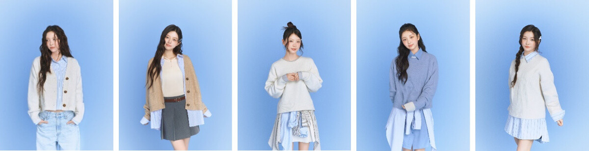 実際に着てみたいコーディネートを聞いてみるとMOKAさんは「ニットの重ね着」。YUNAHさんは「パンツと合わせてスポーティーな感じに」。IROHAさんは「スカートとブーツに合わせてモードっぽく」。MINJUさんは「デニムに合わせてカジュアルに」。WONHEEさんは「シャツワンピースの上にブルーのニットを合わせたい」とメンバー皆さんの個性が垣間見えるコメントを聞くことが出来ました。