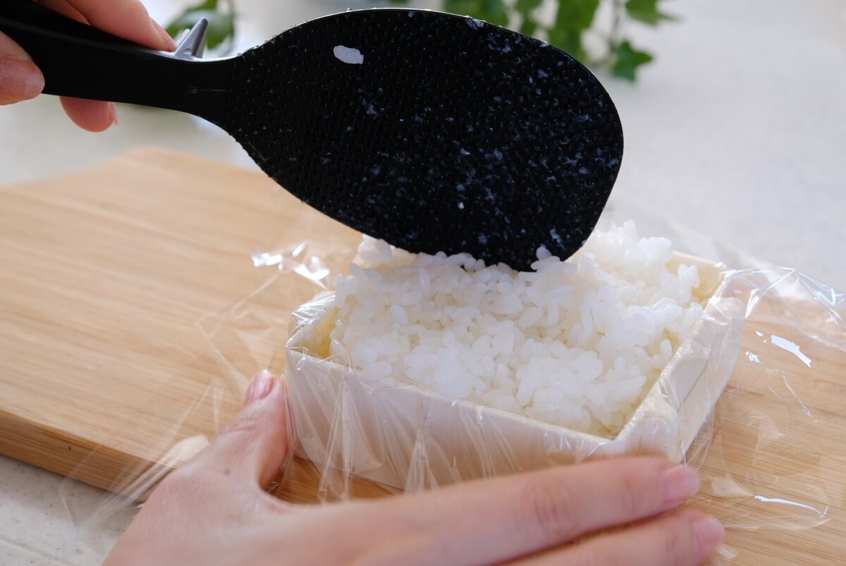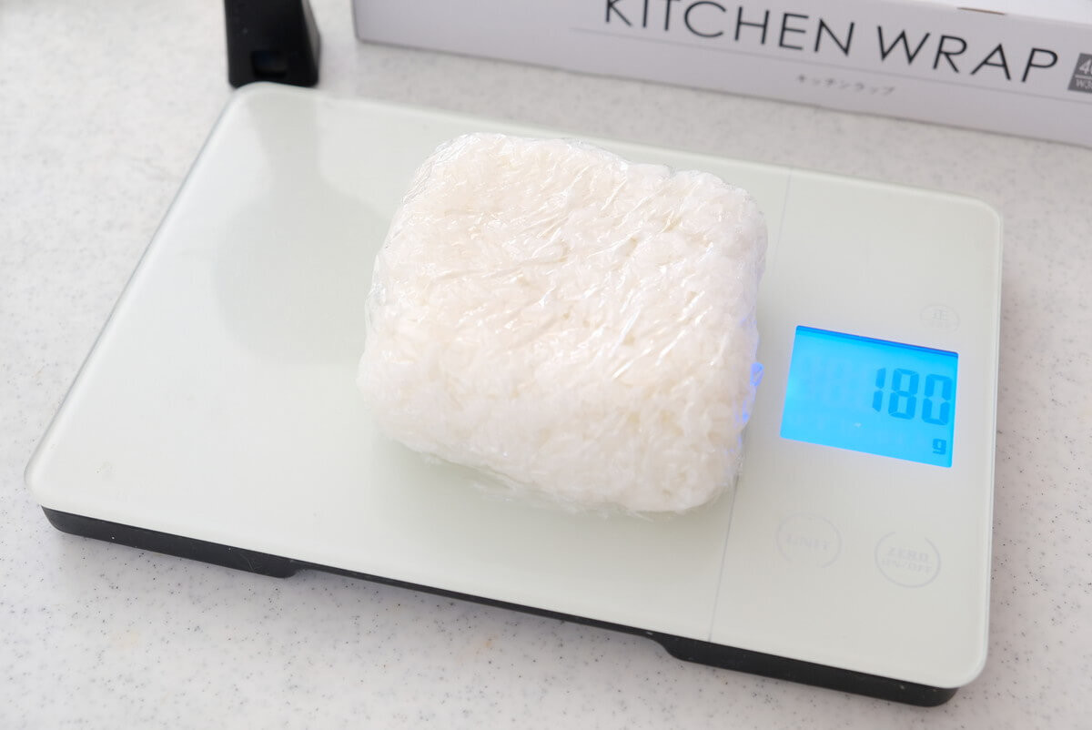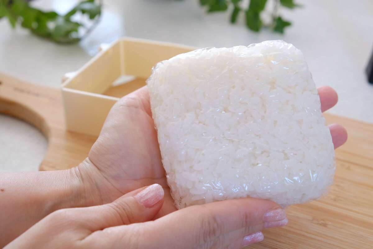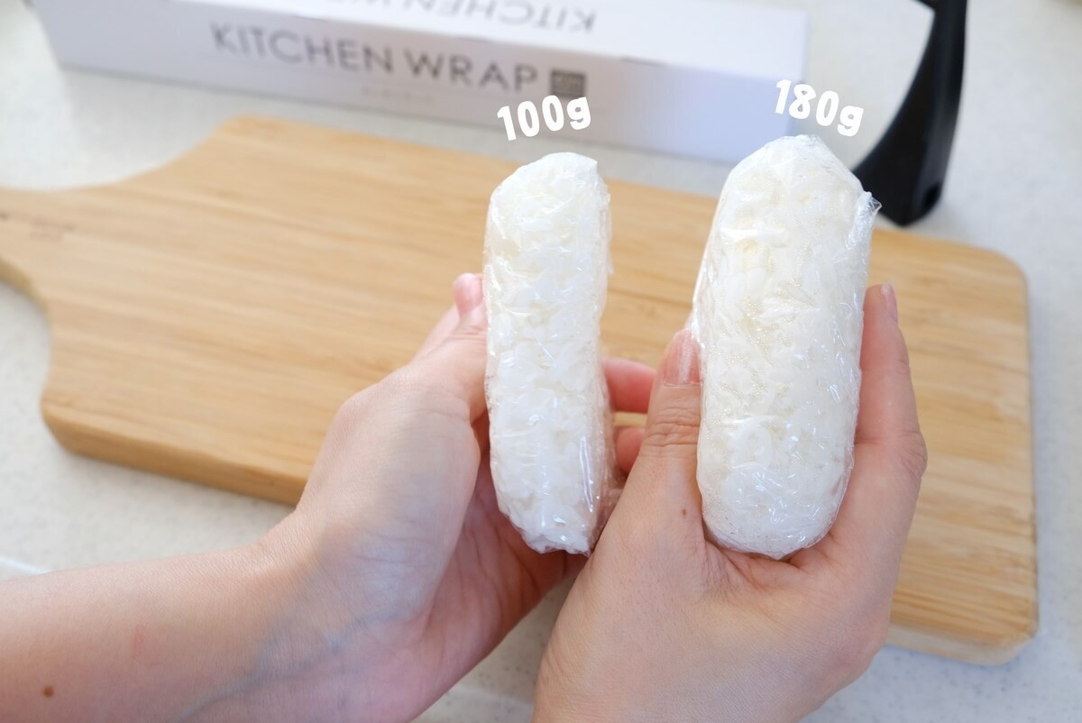 ちなみに、詰める量(厚み)を半分くらいにすると、約100gのご飯も作れます。