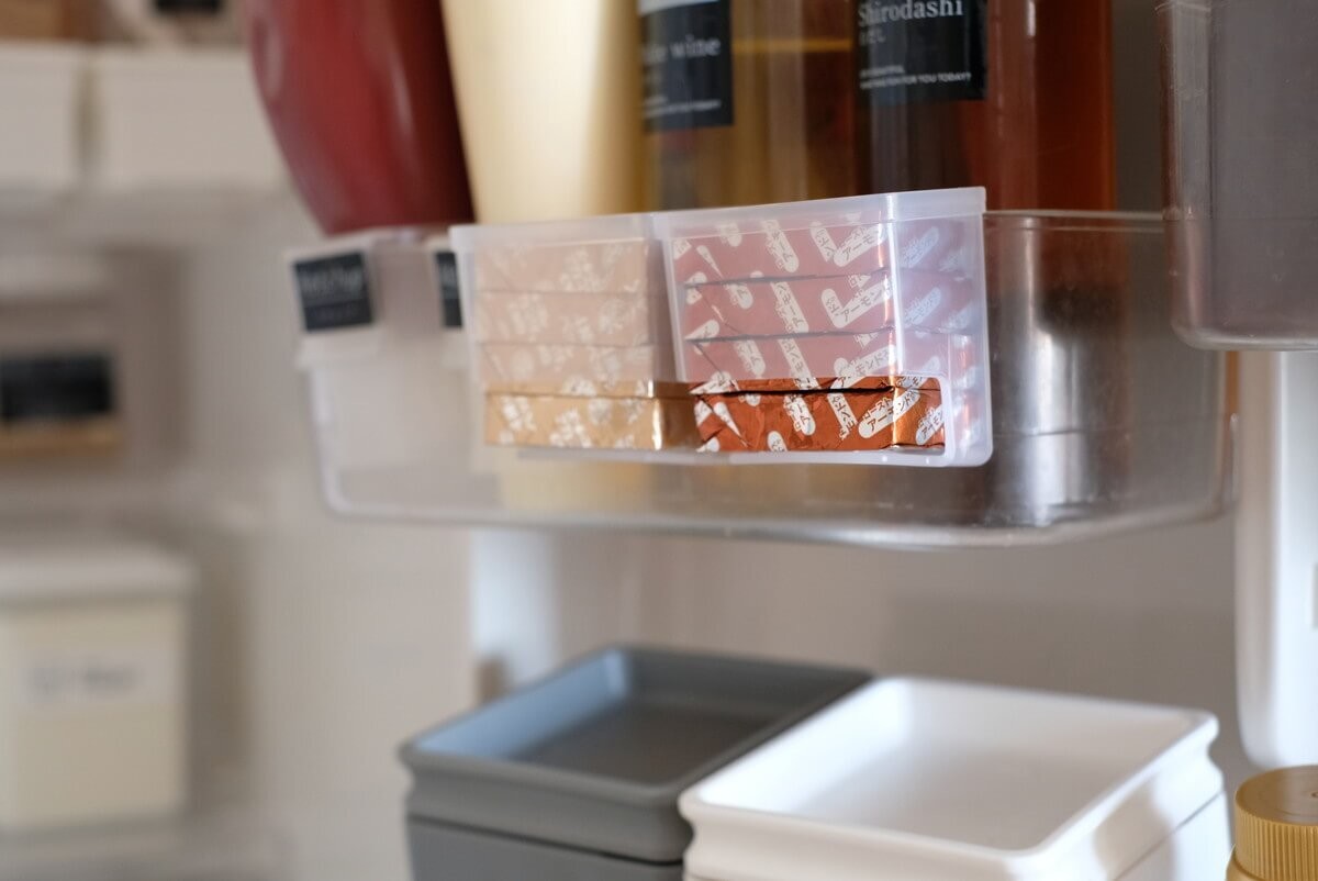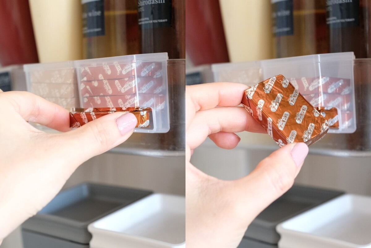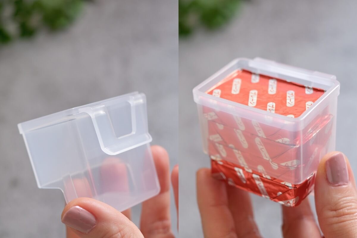 バラバラになって管理しにくいベビーチーズの収納場所が簡単に作れちゃいます。