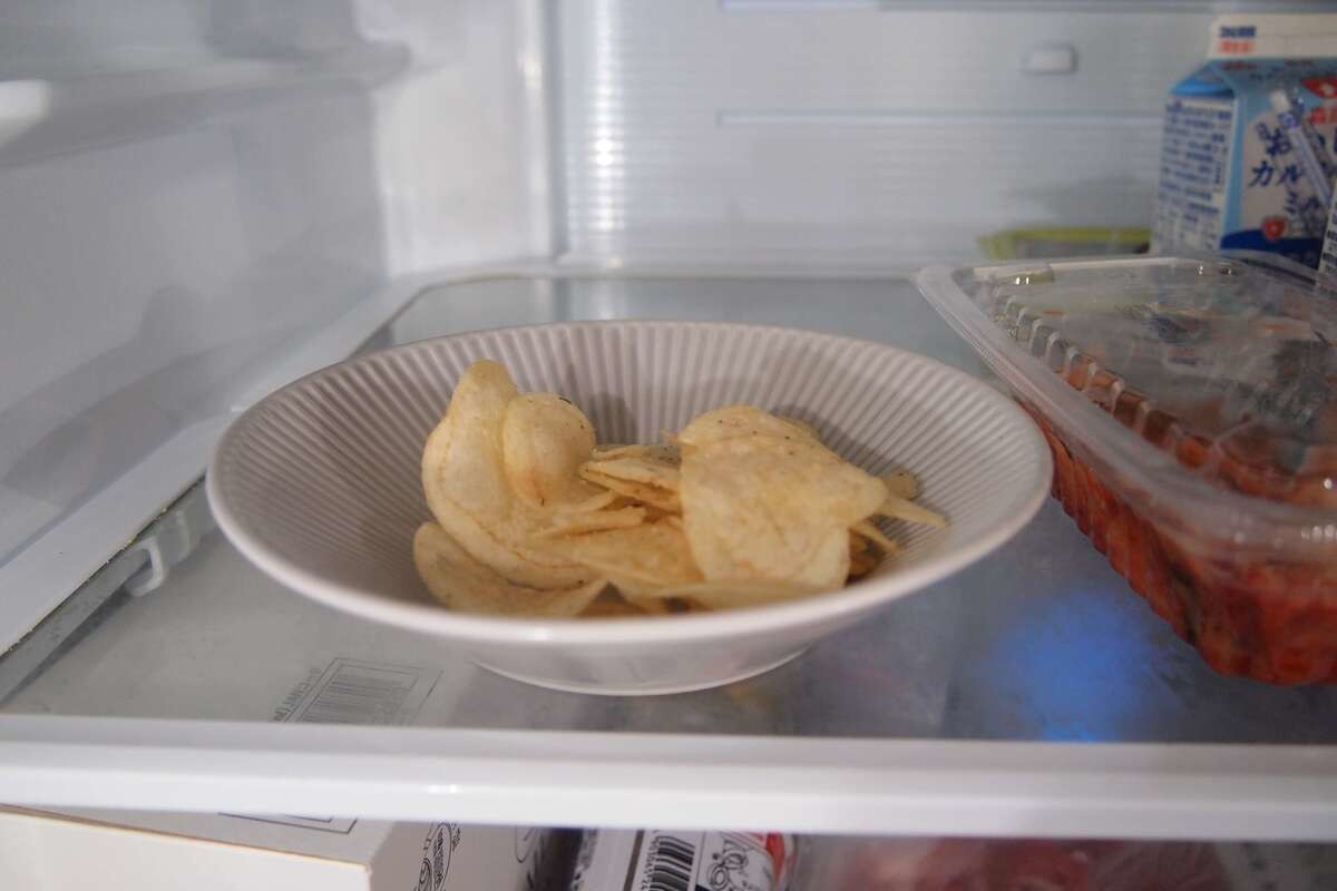 冷蔵庫の保管は、一見「涼しい場所」なので、ポテトチップスの保存場所として問題なさそうに思えますよね。