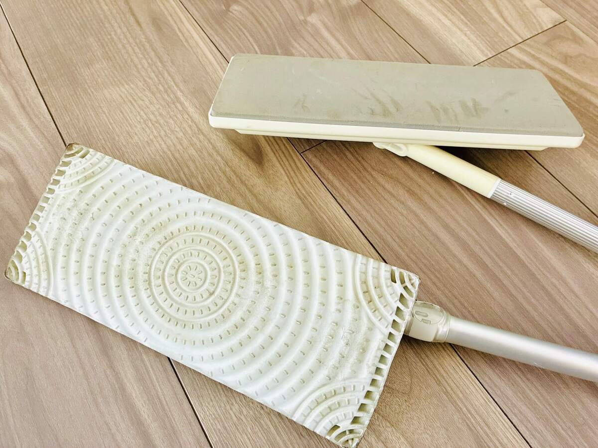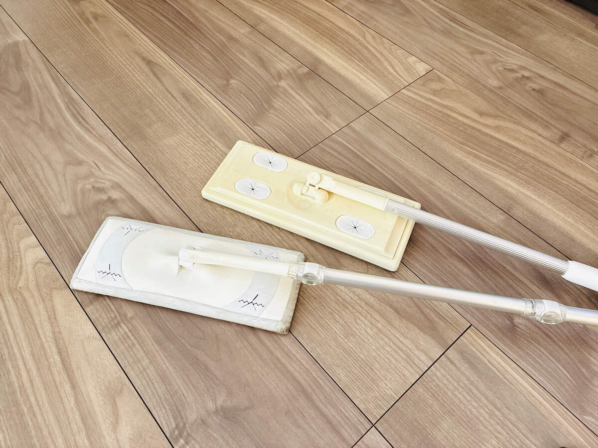 こちらは、我が家が使っているフロアワイパー。実は、ひとつはお安いフロアワイパーなのですが……