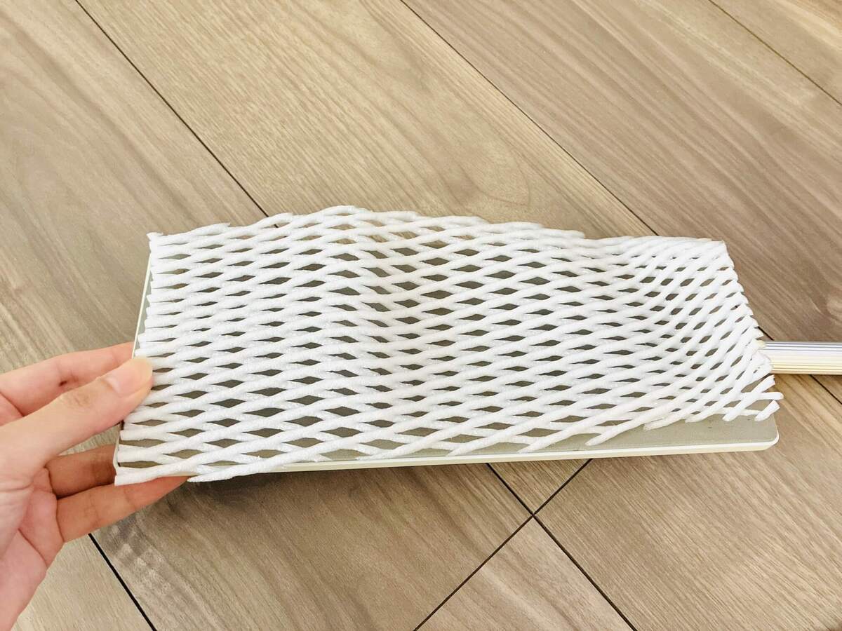 網状で弾力性のあるフルーツキャップが、薄くてペラペラのお安いシートでもやわらかく床にフィットさせてくれます。グッと掃除しやすくなりました♪