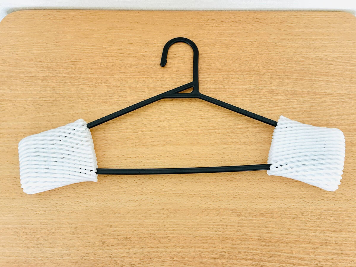 我が家では、100均で購入したお安いハンガーを使っています。普段はこれで十分なのですが、ニットなど肩の部分にポコッとハンガーのカドの形が付いて困るケースもあります。