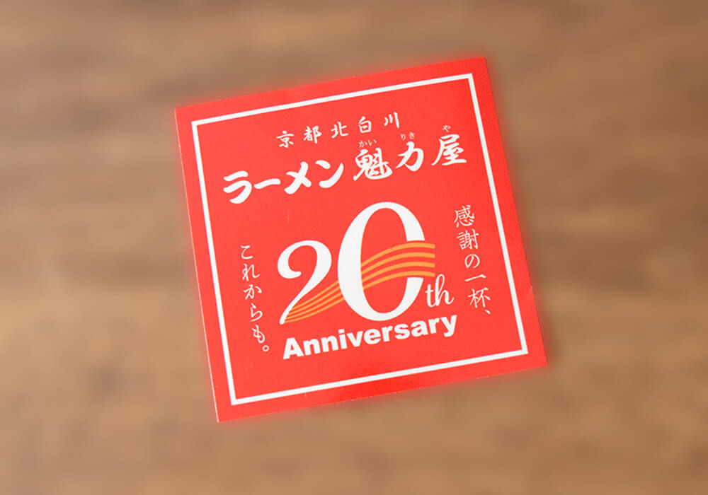 余談ですが、魁力屋は20周年を迎えたとのこと。会計時にステッカーをもらいました。