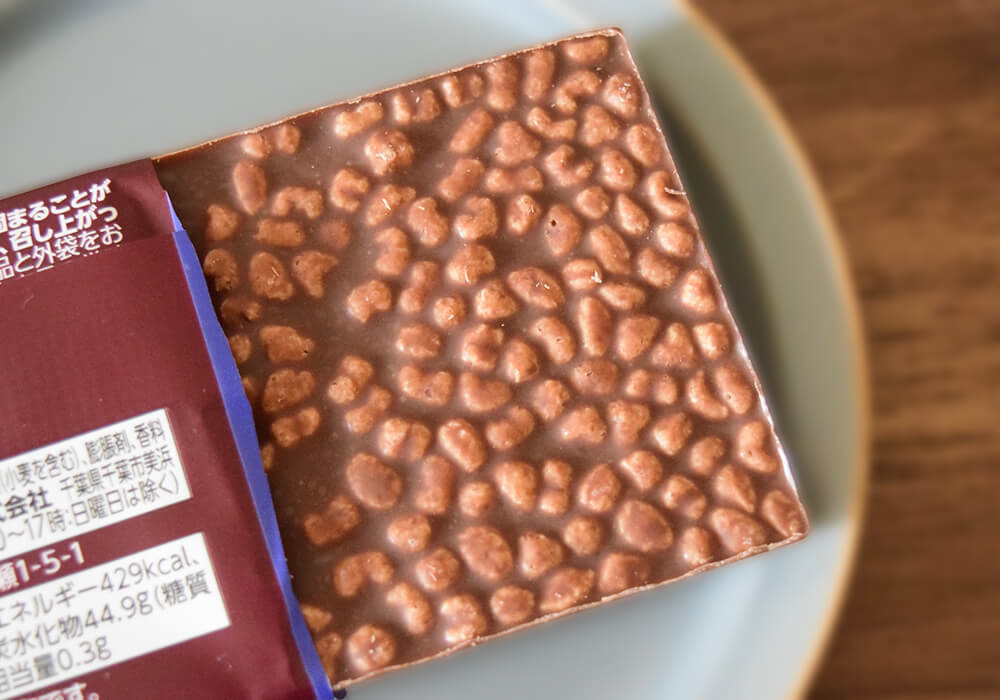 ナッツ風味のチョコレートにシリアルパフが入っていて、こちらもチョコレート代用品として完成度が高いですね。3種類ともに「チョコか?」と言言いたくなるようなハイクオリティで、私だけではなく夫や子ども達も不思議に思いながら、食べ進めていきました。
