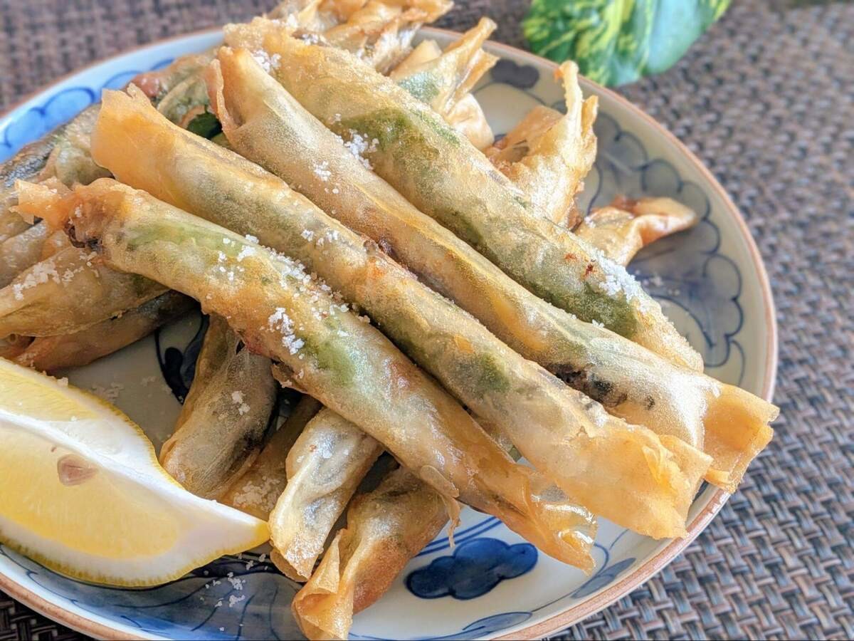 揚げたての春巻きをひと口。サクッ!と心地いい音とともに、中からはふっくらとしたししゃもが登場しました。