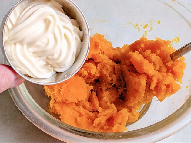 よくポテトサラダのじゃがいもをかぼちゃに置き換えて作ることはあるんですが、それとなんとなく似ているかも。