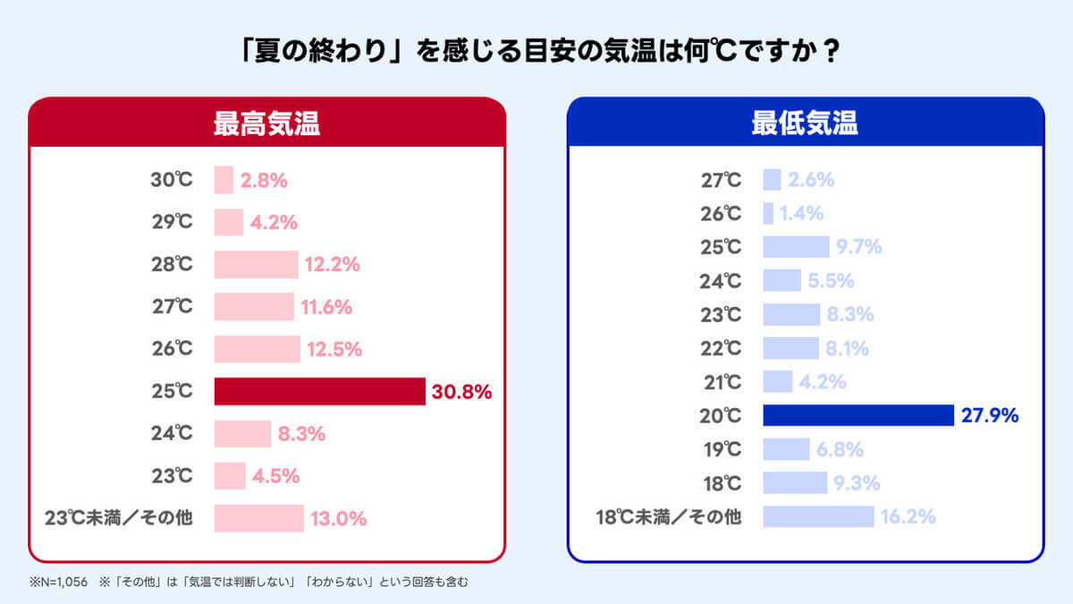 中でも目安となる気温については、「最高気温25℃」「最低気温20℃」を“夏の終わりライン”と感じる人が多いようです。